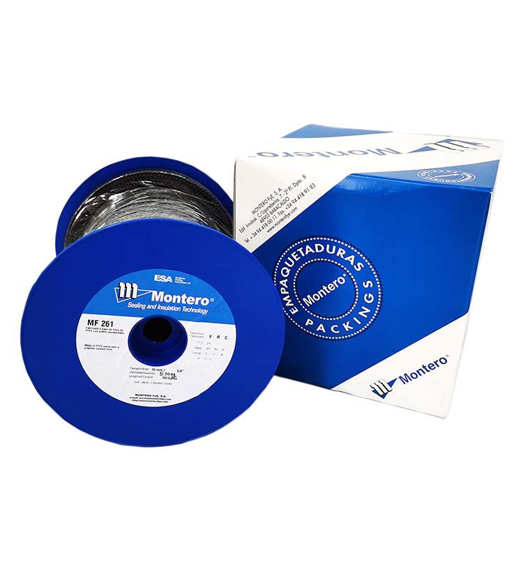 MF-261由含石墨的四氟線經(jīng)對角編織而成。石墨成份使盤根非常柔韌、易安裝及散熱快﹔四氟成份使其極抗化學(xué)腐蝕﹐幾乎適用于除強(qiáng)氧化物質(zhì)(如硝酸、硝基鹽酸及強(qiáng)堿)之外的任何介質(zhì)。此盤根不易硬化,且具有自潤滑性能﹐使其被廣泛應(yīng)用于各種旋轉(zhuǎn)設(shè)備的填料函及閥門。