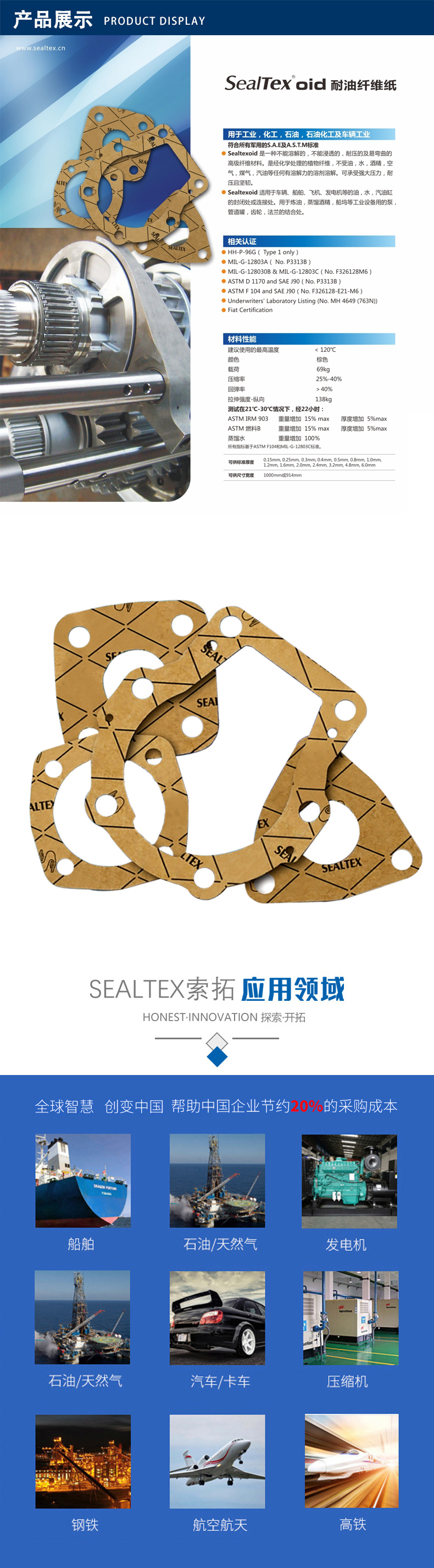 上海索拓密封材料有限公司長(zhǎng)期致力于適用于各行業(yè)的密封墊、無石棉墊片、環(huán)保墊片和耐高溫隔熱產(chǎn)品的生產(chǎn)、加工及銷售